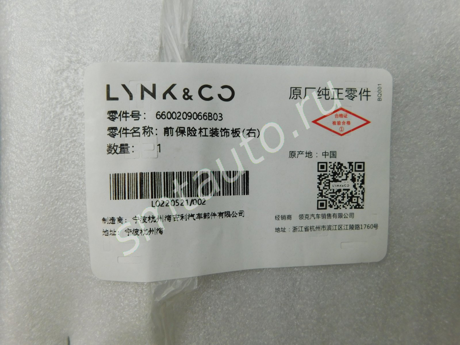 Оригинал Zeekr. Под номерной знак.