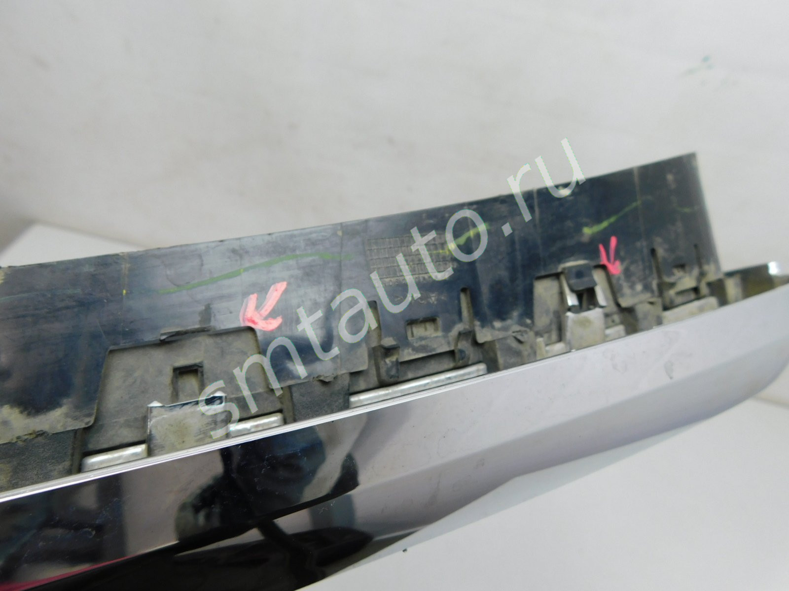 Левая хром накладка. Дефект двух креплений.