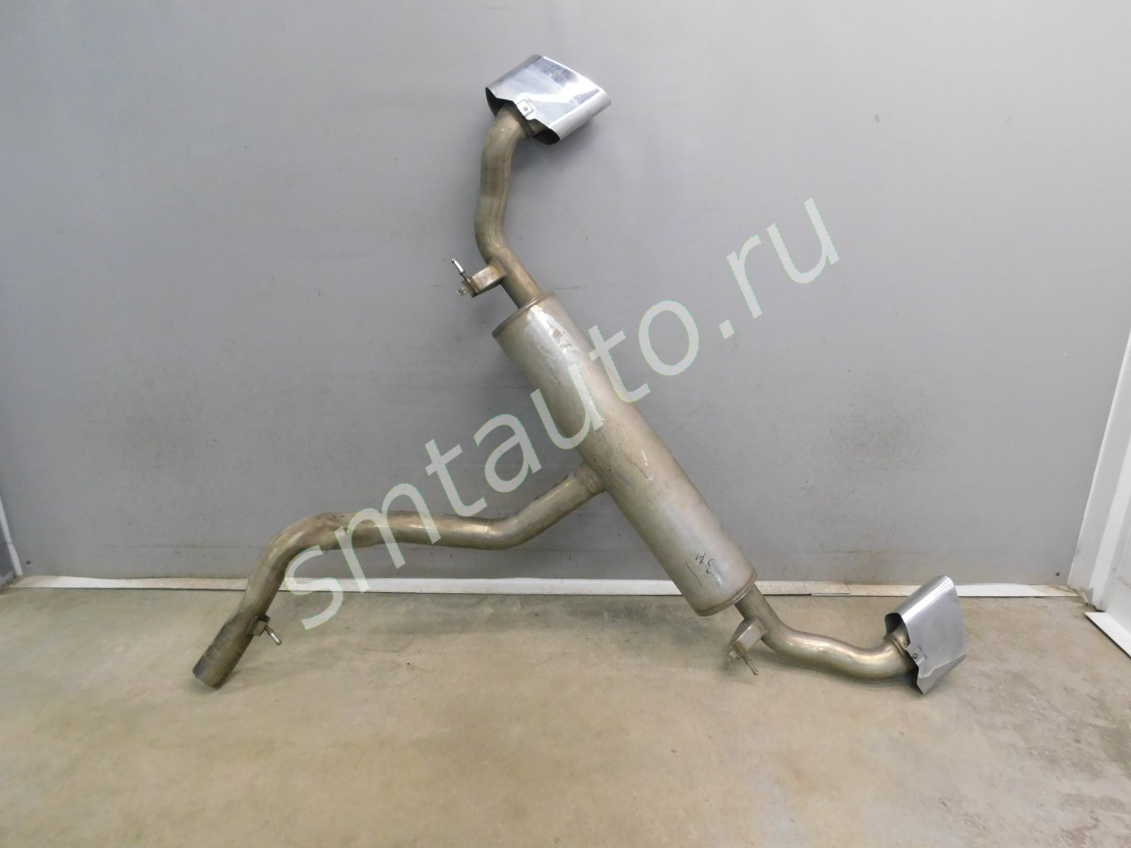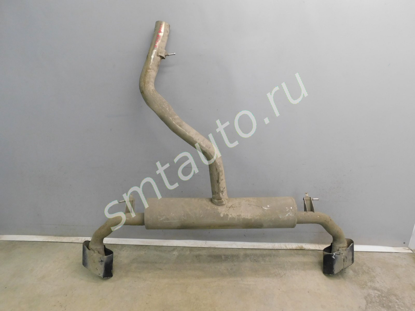 Дефект левой насадки глушителя. См фото