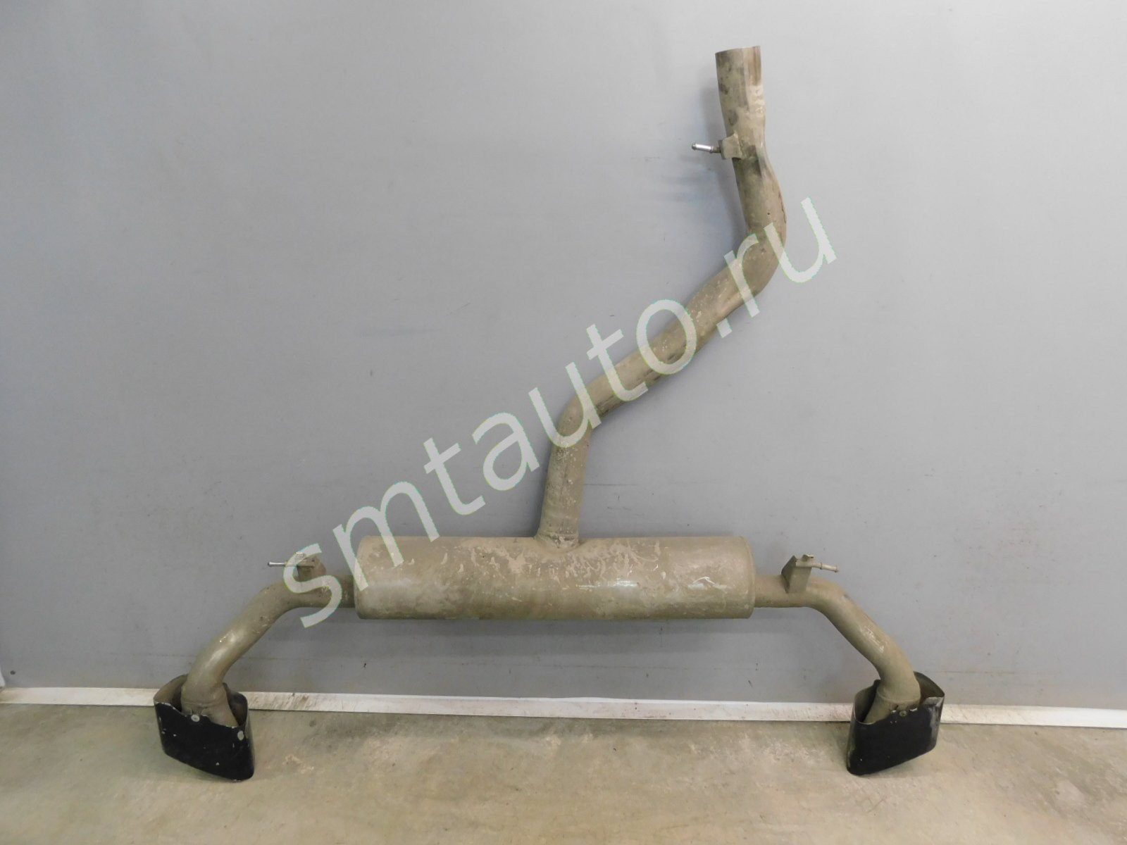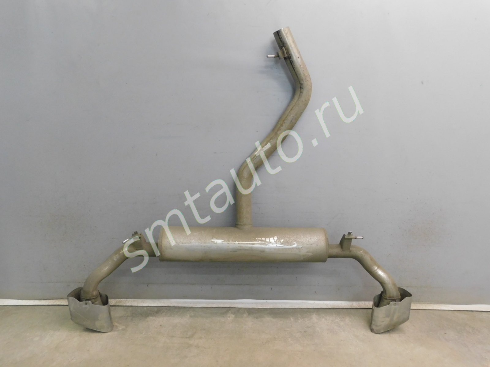 Дефект левой насадки глушителя. См фото