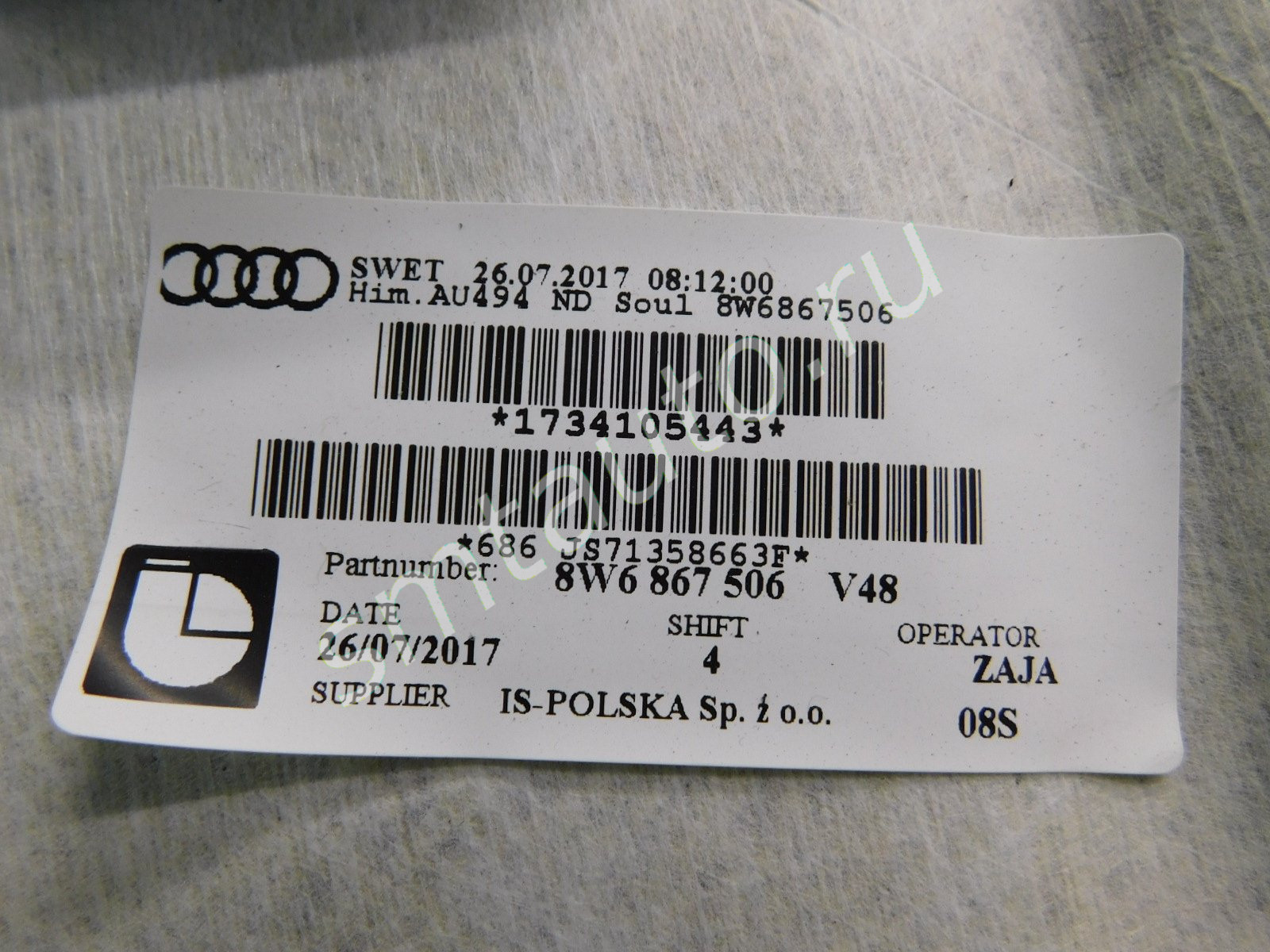 8W6867506, 8W6867506V48
